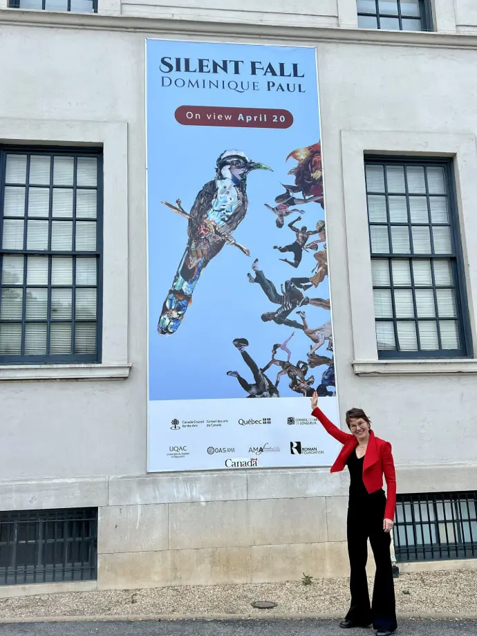 The exhibition Seeing Red (Voir rouge), bringing together major works since 2012, was presented at the Maison de la culture Marcel Robidas in Longueuil in 2024, and received more than 8 000 visitors, a record number for this venue. This exhibition followed on from several collaborative works developed in the city, where she resides, including the major performance work Animal Population Decline, created with Jacques-Rousseau high school.