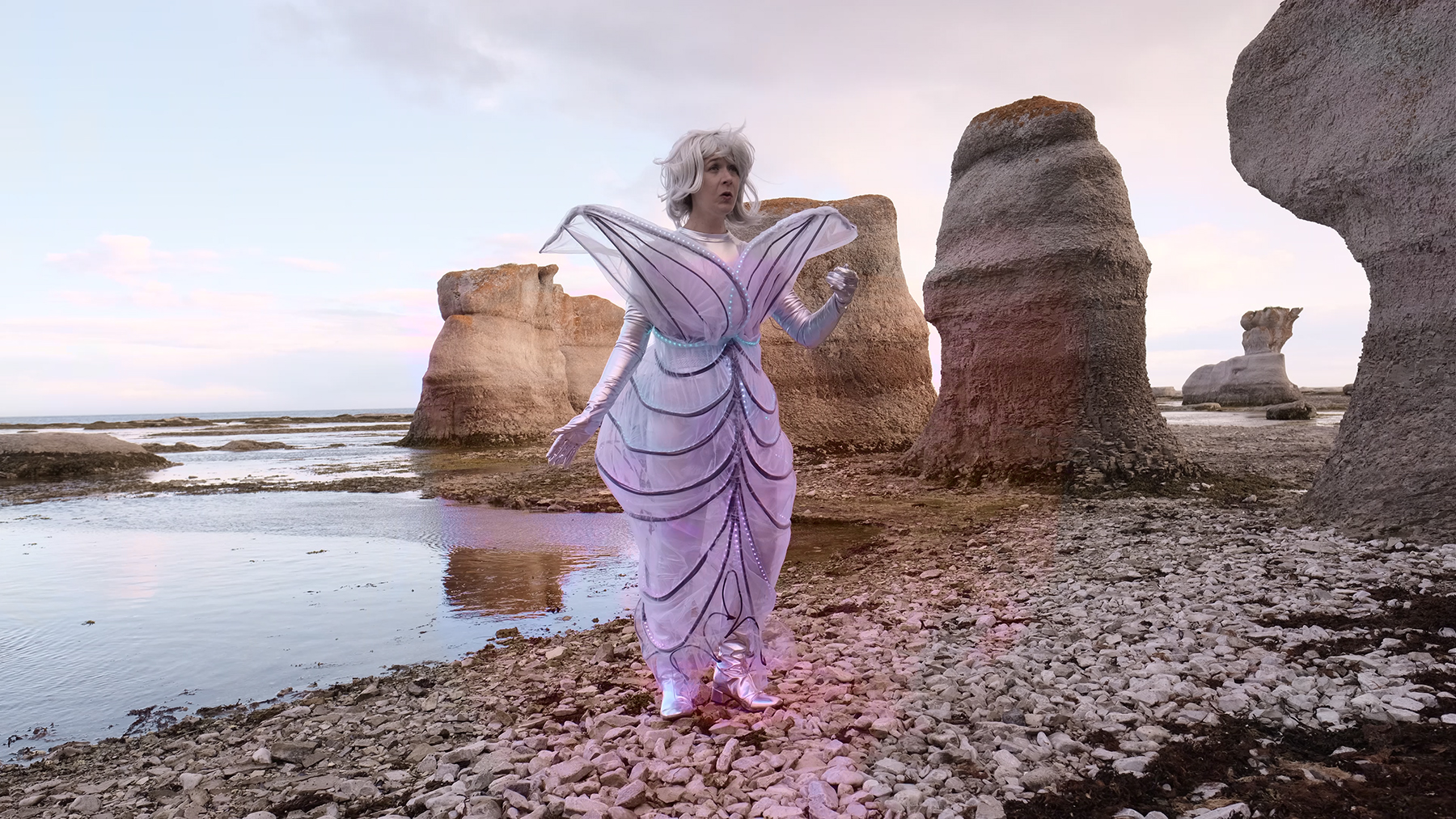 Song for the loss of oxygen in the deep waters of the Estuary and Gulf of St. Lawrence | Magtokoek. Bénédicte Bérubé performs in a luminous fish dress that indicates the rising zone where oxygen is becoming too scarce. This zone, described as hypoxic, where fish can no longer breathe, continues to rise from the estuary bottom. The zone is fed by warmer currents and nutrient runoff from the chemical fertilizers used in agriculture and from urban wastewater. A song to awaken and inspire change.